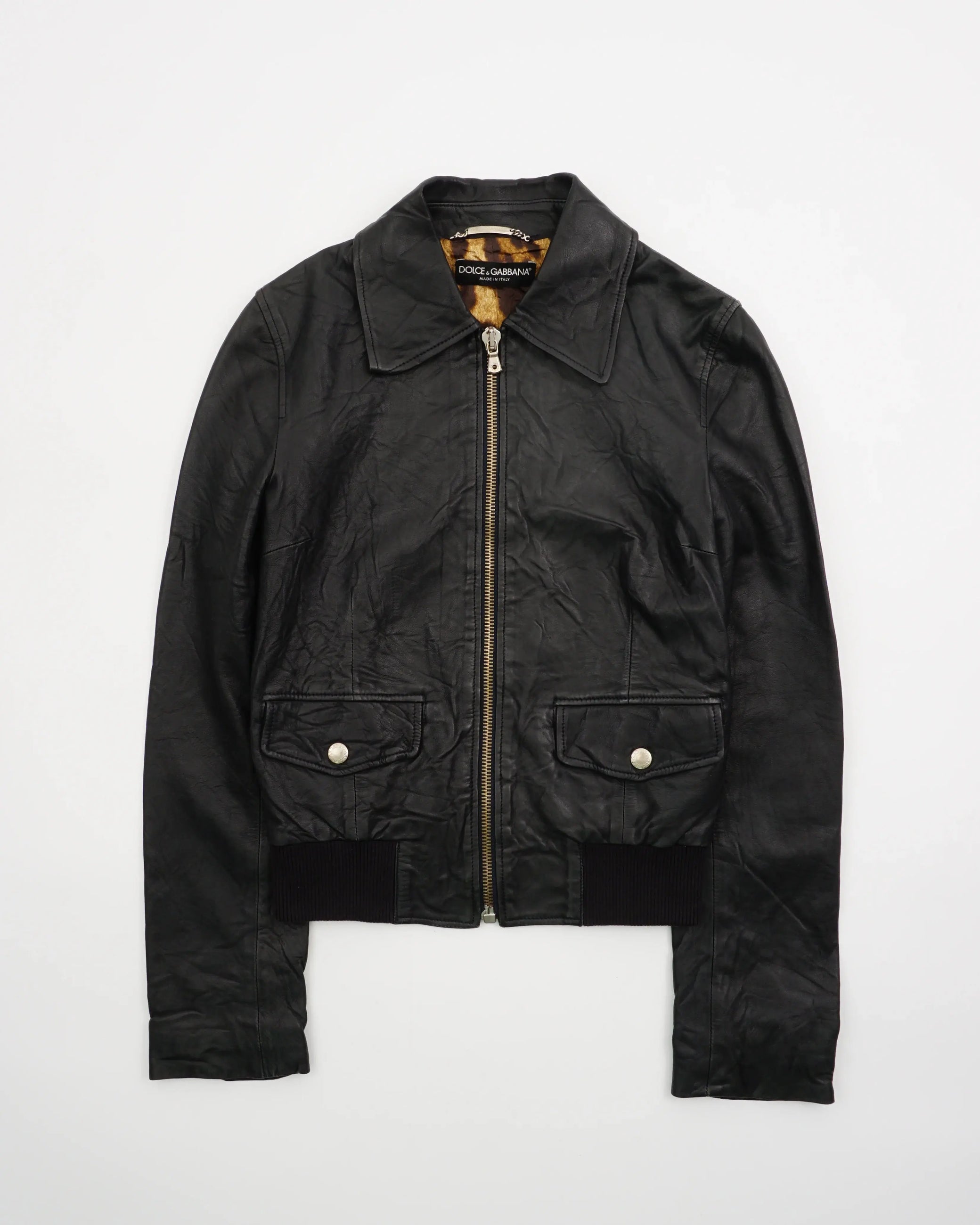 2000's Dolce & Gabbana Leather Bomber Jacket Black