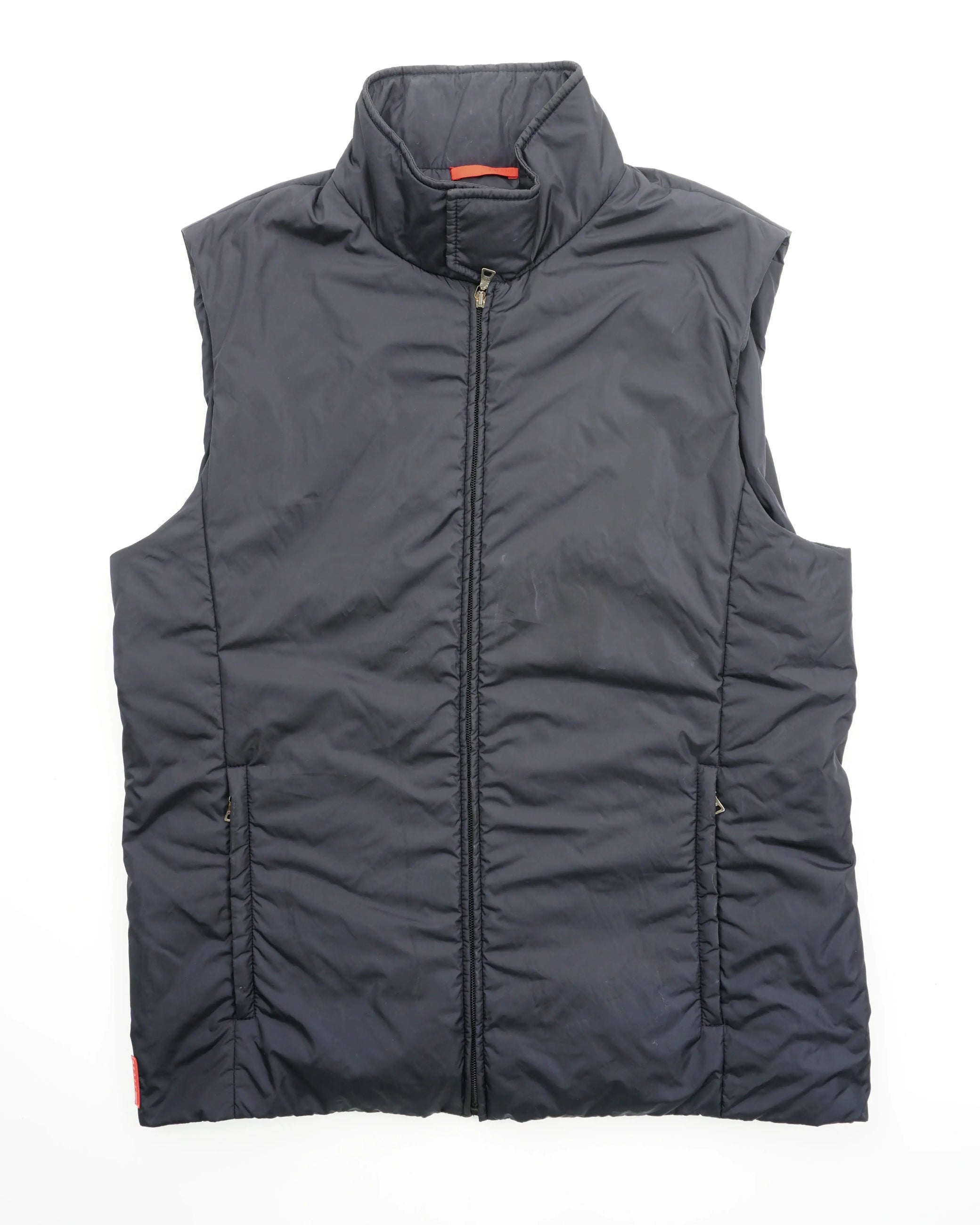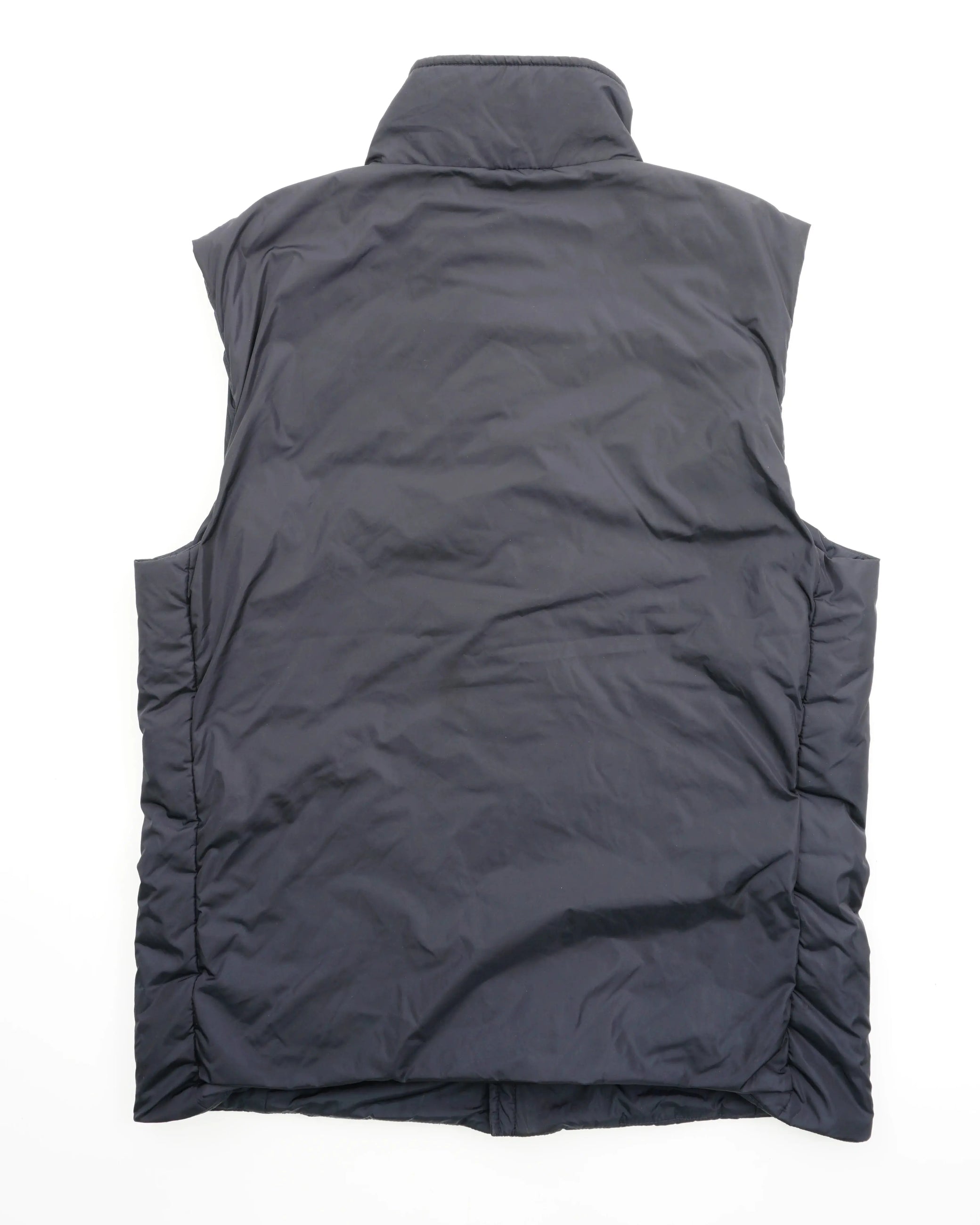 Product details: High collar, full front zip, zippered side pockets, lightly insulated, minimalist puffer design